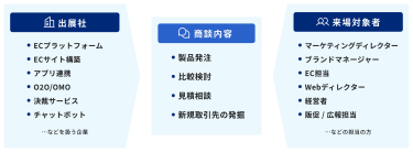 これからECを始めたい企業から、すでにECサイトを運営しているものの「売上が伸び悩んでいる」「改善ノウハウがない」「リソースが足りない」といった課題を持つ企業まで、幅広い層が来場。サイト構築・運営代行・マーケティング支援・物流支援まで、EC事業のグロースに必要なあらゆるサービスが集う商談展です。